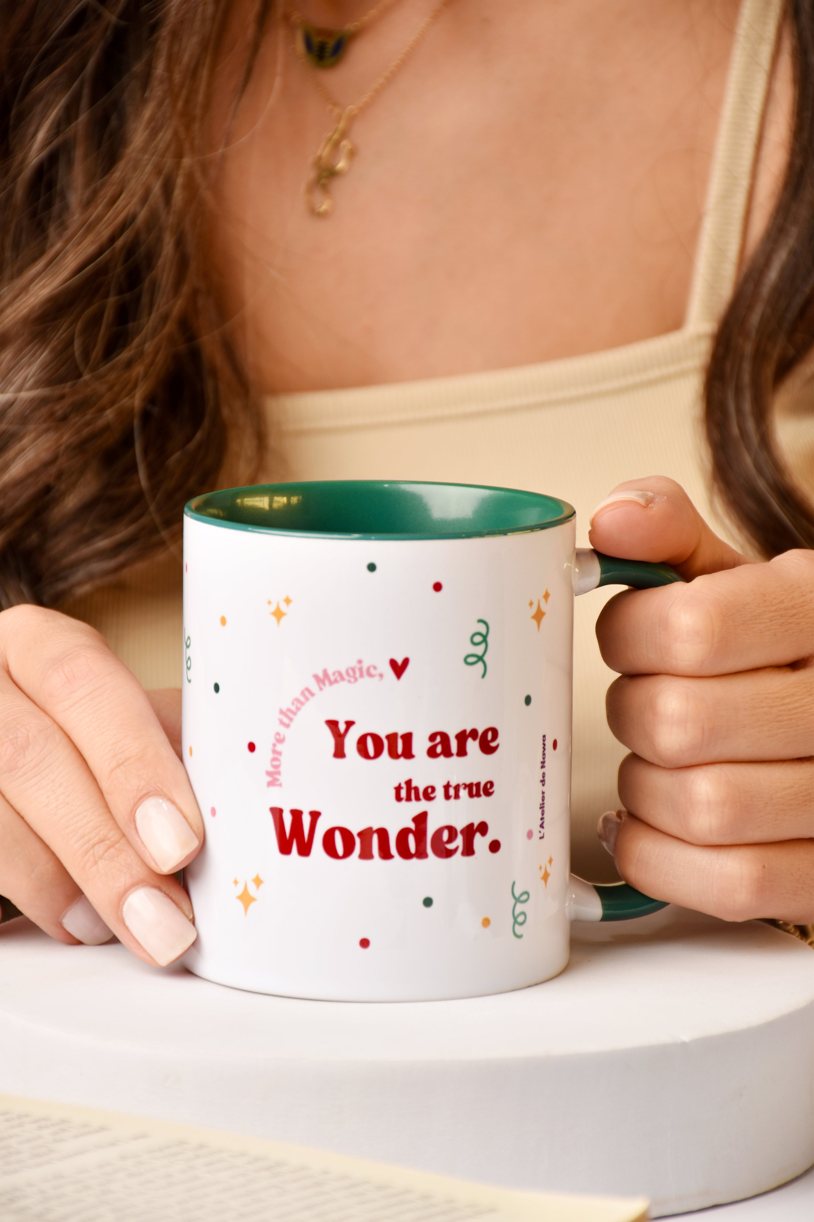 Green Confetti Mug — “More than Magic, You are the True Wonder”