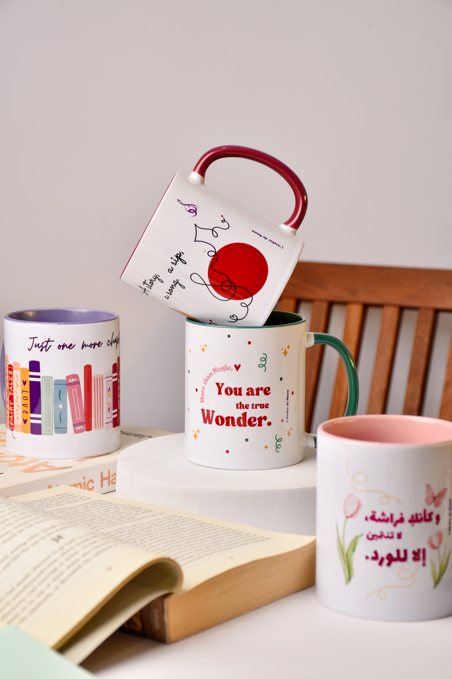 Pink Floral Mug — “وكأنك فراشة لا تنتمين إلا للورد”